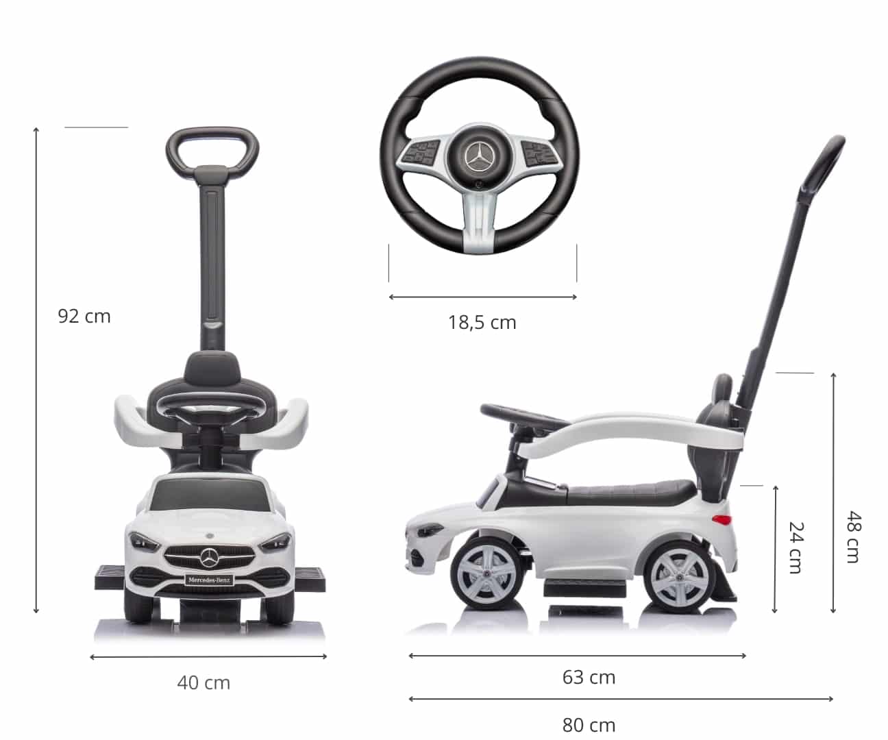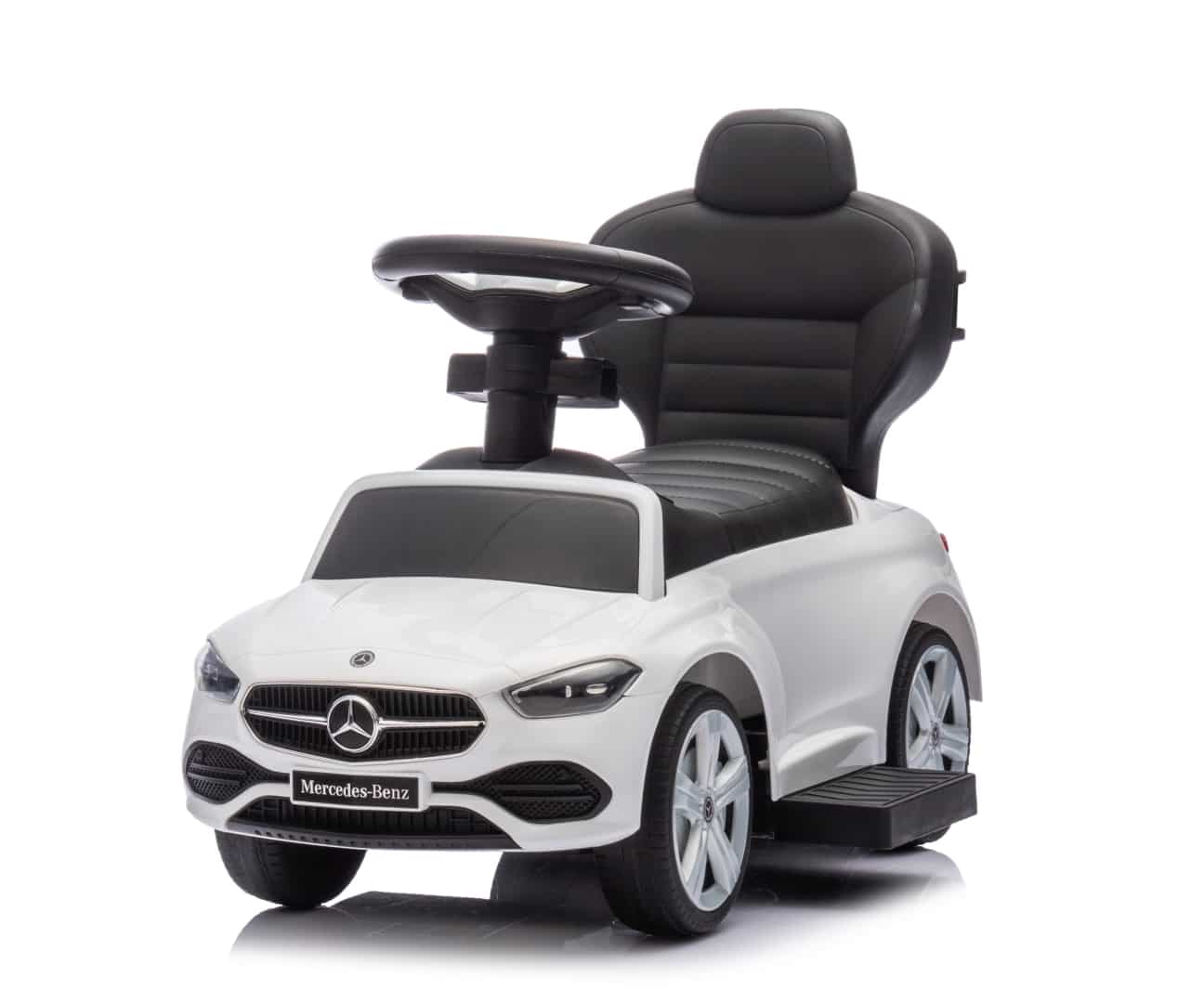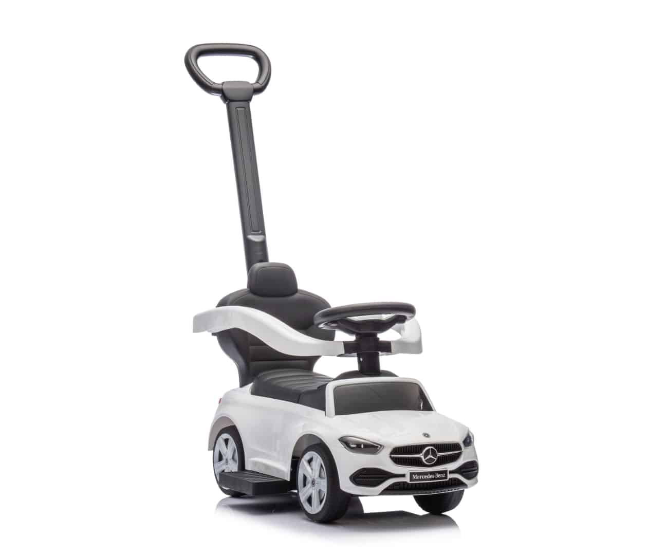 - ✅ Licencja Mercedesa gwarantująca wysoką jakość, Produkt Milly Mally Pojazd z rączką MERCEDES C-Class White: przeznaczony dla dzieci od 12 do 36 miesięcy
