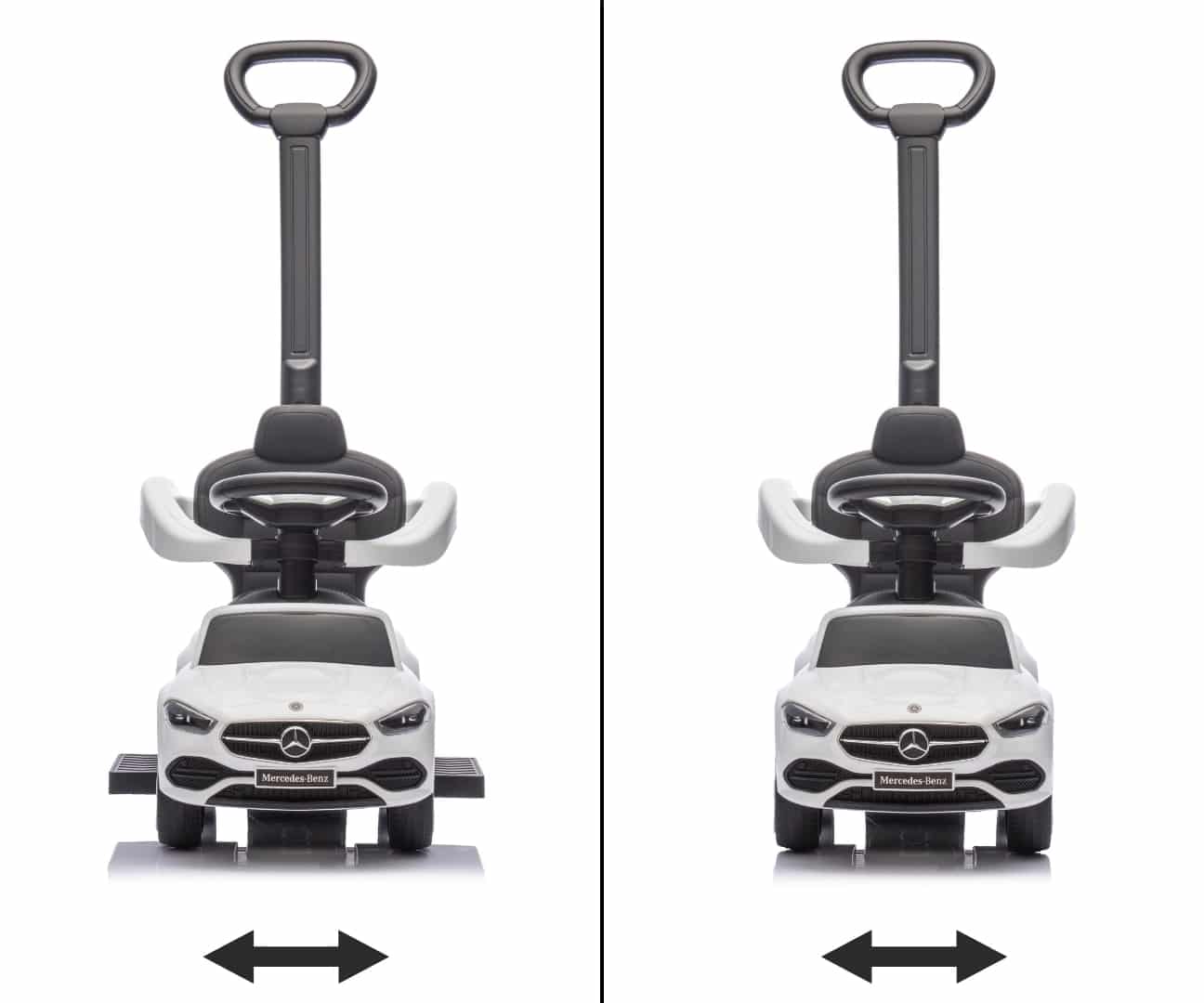 ✔️ Tak, Mercedes C-Class jest idealny już od 12 miesiąca życia, gdy używany jako pchacz z rączką do prowadzenia, gdzie rodzic ma pełną kontrolę, a dziecko jest zabezpieczone barierkami i oparciem.