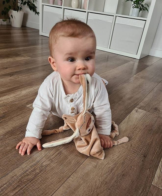 ✔️ Przytuliś typu DouDou został specjalnie zaprojektowany z myślą o potrzebach rozwojowych niemowląt. Jego płaska forma jest łatwiejsza do chwytania przez małe rączki, można go ssać i gryźć w czasie ząbkowania, a różne tekstury stymulują zmysł dotyku. Badania pokazują, że dzieci łatwiej przywiązują się do takich przytulanek, które stają się ich obiektem przejściowym – czymś, co daje poczucie bezpieczeństwa nawet pod nieobecność rodziców.