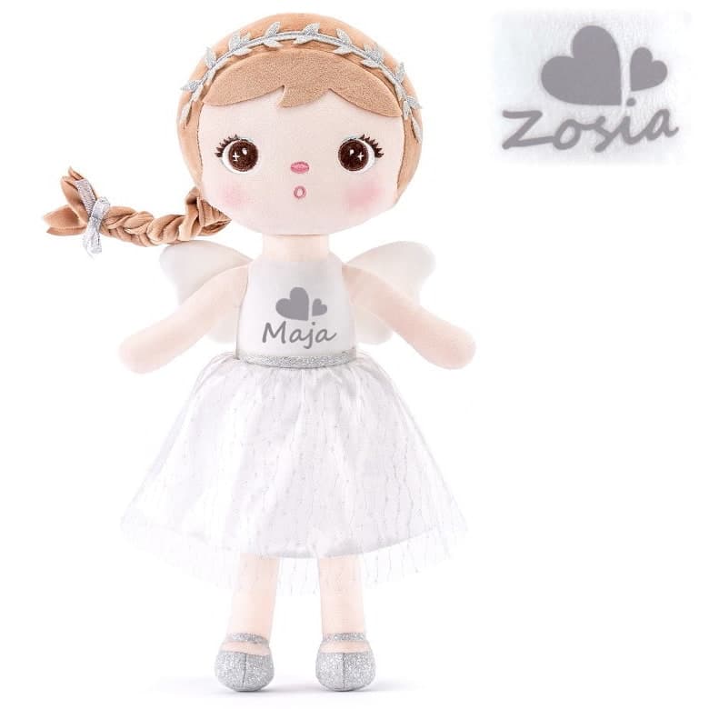 Ten uroczy mały aniołek Metoo to wyjątkowa lalka, która zachwyca swoim niebiańskim wyglądem i delikatnością! Z miękkimi skrzydełkami i zwiewną białą spódniczką wygląda jak prawdziwy anioł stróż, który będzie czuwał nad dzieckiem. Możliwość personalizacji imieniem oraz datą urodzenia lub datą chrztu na skrzydełkach sprawia, że staje się niepowtarzalną pamiątką tego wyjątkowego dnia. Srebrne akcenty na sukience i butach oraz elegancki warkoczyk przewiązany wstążką dodają aniołkowi uroku i sprawiają, że jest idealnym prezentem na chrzciny. Ta przeurocza lalka Metoo o wysokości 35-40 cm ma idealny rozmiar, by można ją było przytulać, bawić się nią i wszędzie zabierać ze sobą.