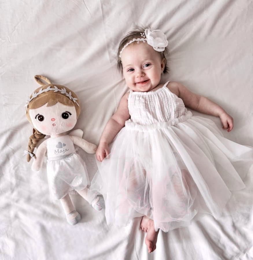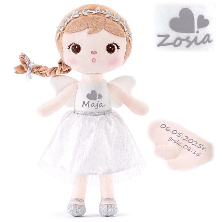 Personalizowany aniołek Metoo to więcej niż zwykła lalka – to symbol opieki i wsparcia, który będzie towarzyszyć dziecku przez lata! Ta elegancka, biała laleczka z imieniem dziecka i datą chrztu to wzruszająca pamiątka, która będzie przypominać o wyjątkowym dniu przez całe życie. Wyobraź sobie wzruszenie rodziców chrzestnych i dziadków, gdy zobaczą tak przemyślany i osobisty prezent! Aniołek może pełnić różne funkcje – być przytulanką dla mniejszych dzieci, ozdobą pokoju dla starszych, a w przyszłości cenną pamiątką z dzieciństwa.