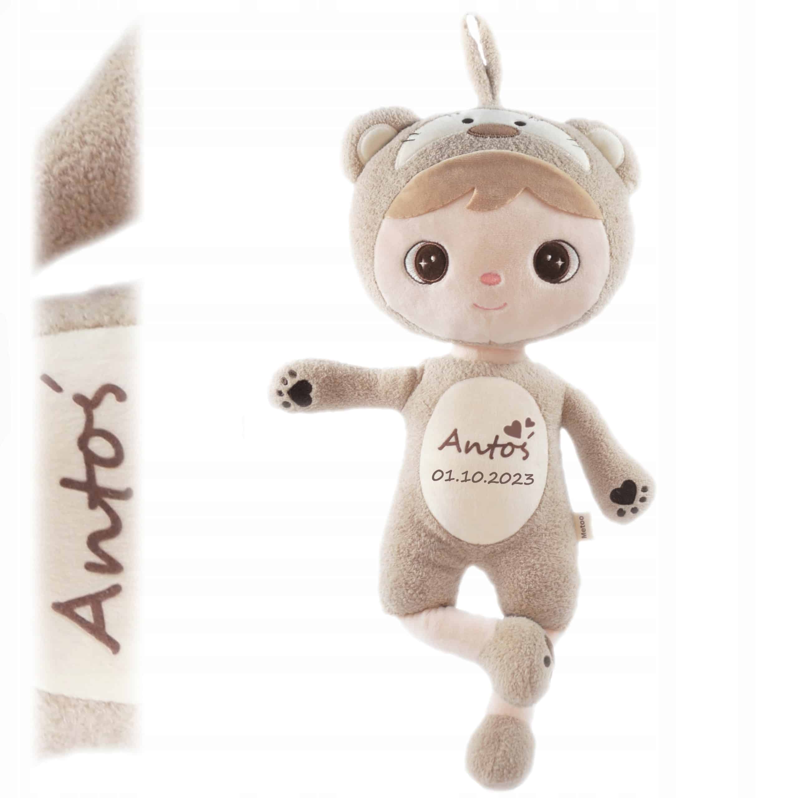 - ✔️ Personalizacja: imię i data umieszczone na brzuszku misia