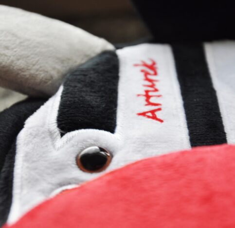– Wykonany z miłego w dotyku pluszu