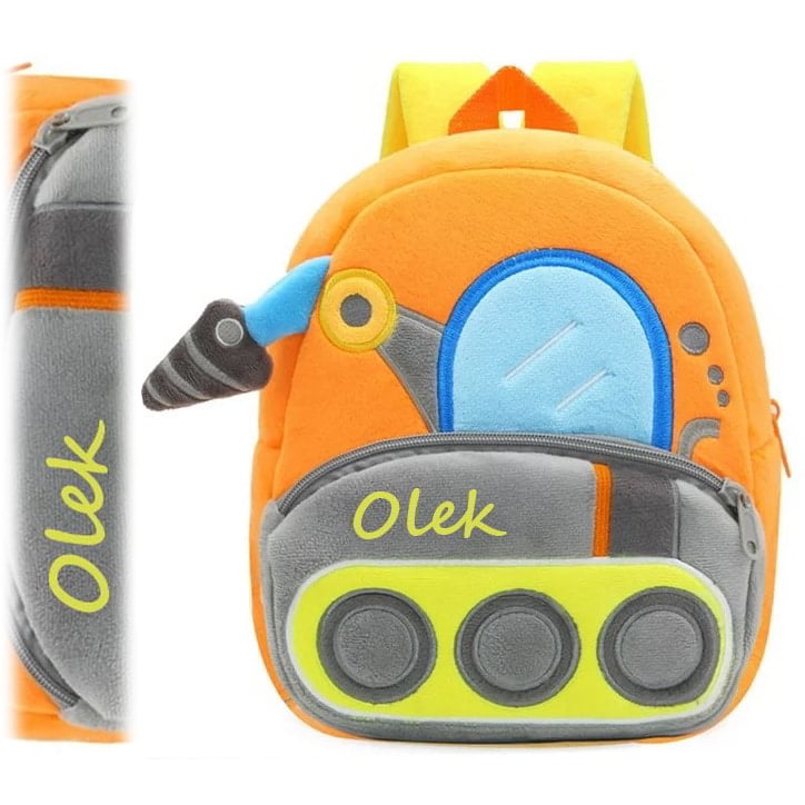 🚜 PLUSZOWY PLECAK KOPARKA Z IMIENIEM DZIECKA 🚜