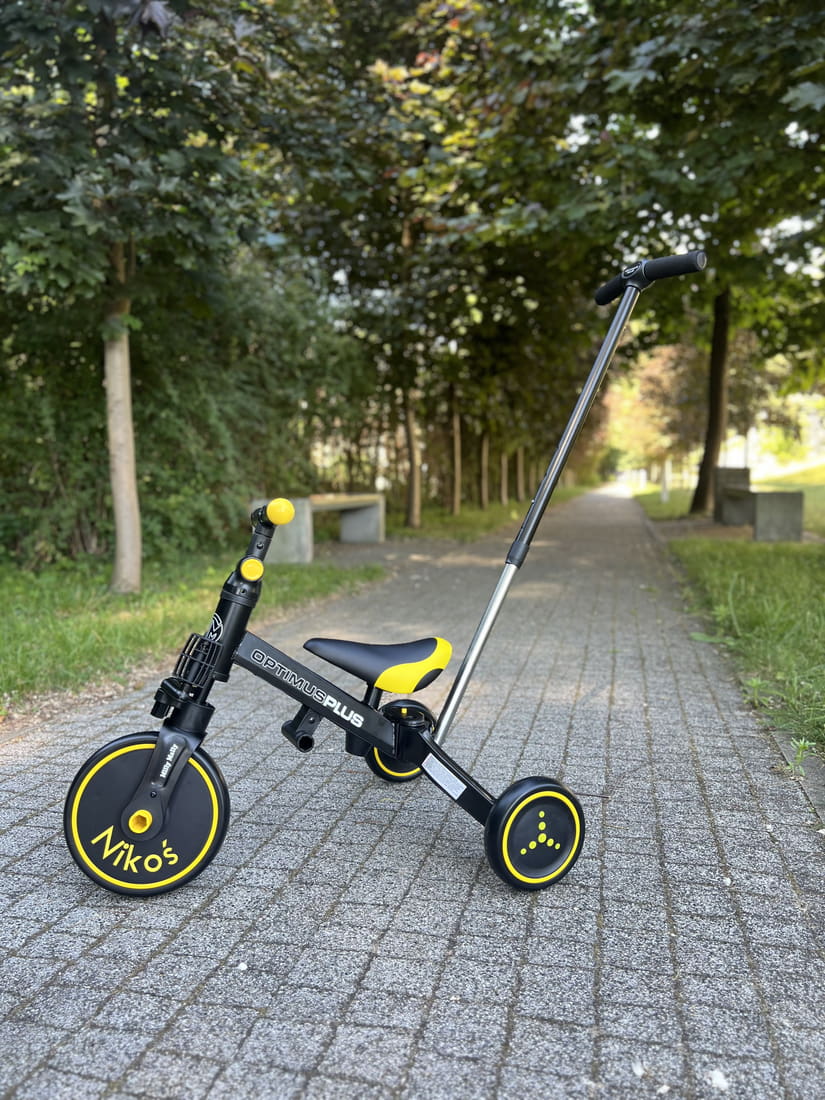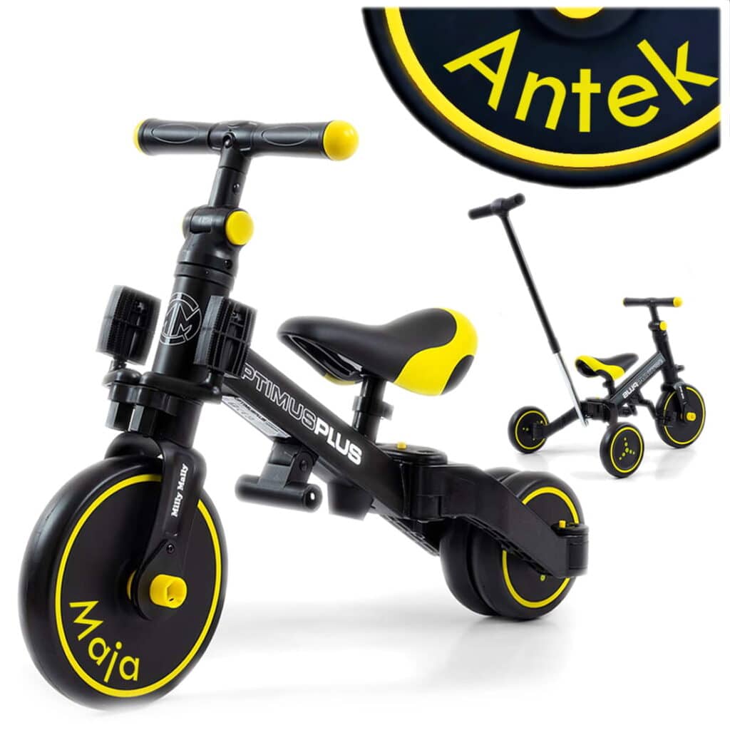 Szukasz prezentu, który wyrośnie razem z Twoim maluszkiem? Ten elegancki czarny rowerek Optimus to prawdziwe cztery pojazdy w jednym! Z możliwością personalizacji imieniem dziecka na kole stanie się nie tylko zabawką, ale prawdziwym kompanem dziecięcych przygód.