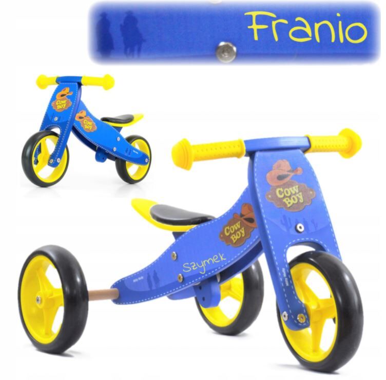 Wiek: na roczek Funkcje: rower trójkołowy + biegowy Znaki szczególne: kowbojski styl