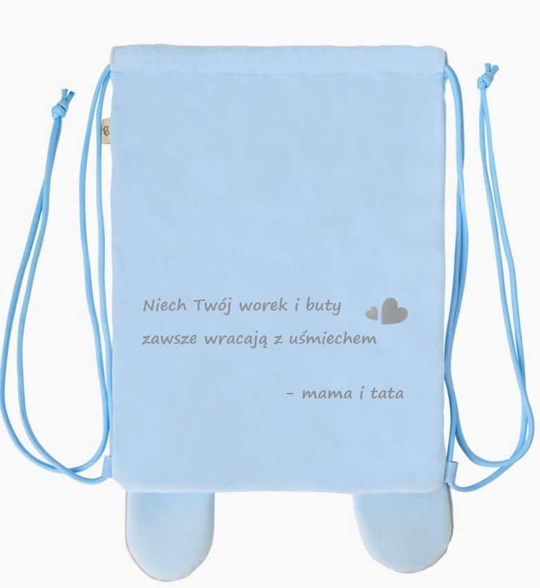 ✔️ Zdecydowanie tak! Kolor napisów jest starannie dobrany, by zapewnić optymalny kontrast i czytelność na niebieskim tle worka. Używamy szarych odcieni, które doskonale wyróżniają się na błękitnym materiale, pozostając jednocześnie eleganckimi i subtelnymi. Zarówno imię jak i dedykacja są doskonale widoczne w różnych warunkach oświetleniowych, co ułatwia dziecku identyfikację swojego worka nawet w zatłoczonej szatni przedszkolnej czy szkolnej.